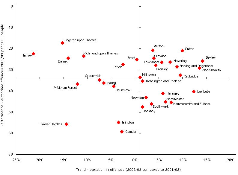 - Appendix 3: Autocrime performance by borough - financial year 2002–2003