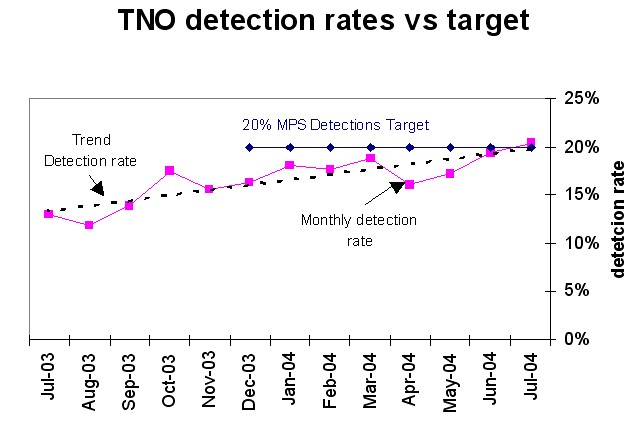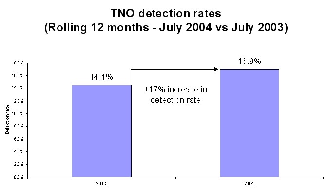 Chart 1 - TNO Detection rates (Rolling 12 months July 2003 and July 2004)