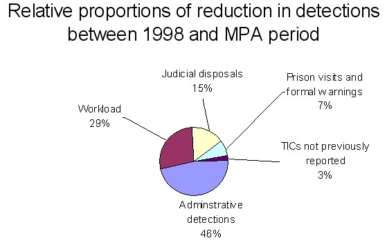 Chart 4 – Relative proportions of the reduction in detection rates between 1998 and MPA period.