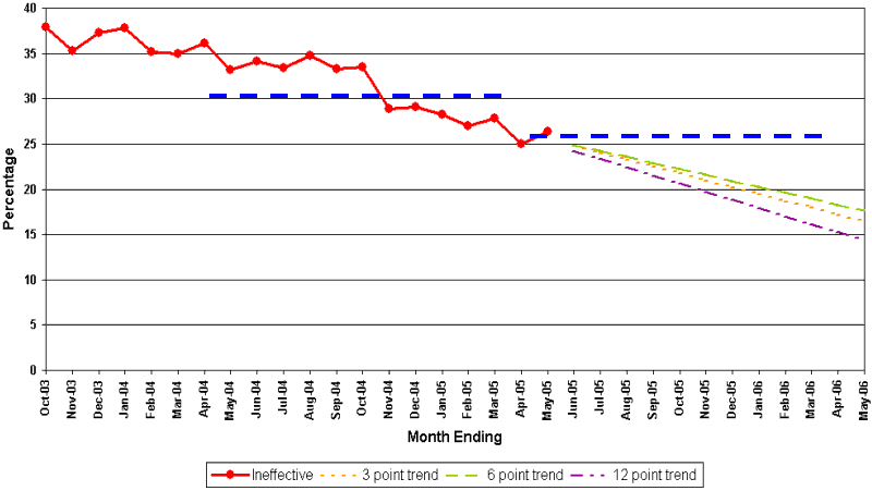 - Despite greatly improved performance in 2004/5, for ineffective trials in magistrates’ courts and most other indicators performance remains significantly lower than elsewhere in the country.