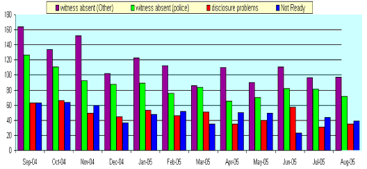 23. Several Boroughs reported improvements when strongly worded warnings and discipline was used. The Traffic CJU OCU was visited and improvements in working practices were recommended. The importance of trial vacation was highlighted to all agencies, initially resulting in a steep rise in the number of vacated trials.