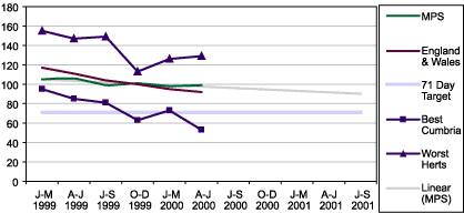 18. Performance in the MPS should be seen against the rest of the country taking into account the full London perspective. The MPS is clearly critical to success against the pledge. MPS performance to date has made real improvements taking into account the complexity of its demands and structure compared to county forces.Chart of overall performance against 71-Day PYO pledge
